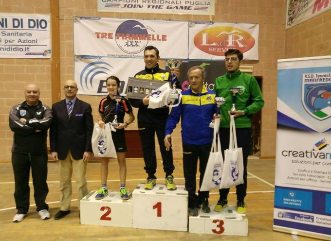 Un finale di anno strepitoso per la MAURIZIO LEMBO MONOPOLI, che ai Campionati Regionali di Casamassima, ha ottenuto due podi prestigiosi con l’Oro di Lacitgnola nel doppio, in coppia con il tarantino Giovanni Russo, ( che però poi lo ha battuto nei quarti dopo un soffertissimo 3-2). La sorpresa più grossa di giornata l’ha marcata il folletto Vito De Laurentis, il quale, partito con la testa di serie n.