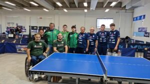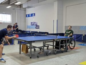 La Domenica mattina invece, ci regalava il ritorno in campo per la nostra INTINI COSTRUZIONI del nostro Presidente Antonio Lillo (E come poteva essere diversamente ? Un Ingegnere per uno sponsor edile 🙂 ), che con Antonella Santoro, Roberto de Lorenzo e Luigi Minerva (quest’ultimo in precarie condizioni fisiche) si recavano in quel di Taranto contro la DUE MARI, nel Girone F della D2. Era proprio Lillo a scendere in campo per primo contro Roberto Vipera, in un match che lo vedeva rimontare da 0-2 a 1-2 e avere anche delle chanches di andare al 5° set. Qui sicuramente la lunga pausa agonistica si è fatta sentire e Vipera ha prevalso per 14-12, ma dal nostro presidente sono arrivati segnali confortanti per il prosieguo del campionato. Piuttosto netta la sconfitta della Capitana Santoro contro Marco Vipera per 3-0, cosi come l’identico parziale lo riservava Liuzzi a Roberto de Lorenzo, anche se il secondo set finiva 13-11 con qualche rimpianto. Nel doppio l’inedita coppia Capitana & Presidente si opponeva bene alla coppia più affiatata Marco Vipera & Liuzzi, e i parziali (9/8/8) lasciano ben sperare per i matches a venire. Ancora un match molto combattuto fra Marco Vipera (di certo il migliore dei tarantini in questa partita) e Antonio Lillo, vedeva il nostro soccombere per 3-0, ma con parziali (13-11/11-9/11-9) che è solo questione di tempo e la INTINI COSTRUZIONI avrà fra le sue fila un giocatore all’altezza del campionato. A risultato acquisito c’era il cambio fra De Lorenzo e Minerva che, come detto, non era al meglio della condizione per un infortunio e perdeva anche lui per 3-0, non senza aver portato il suo avversario Roberto Vipera ai vantaggi nel 2° set. Finalmente nell’ultimo incontro, la LEONESSA SANTORO, come già accaduto in passato, dava ai suoi colori il punto della bandiera, battendo Pietro Liuzzi per 3-1, in rimonta dall’1-0 iniziale, a dimostrazione di una forma partita in crescita, dopo i 2 allenamenti della scorsa settimana.