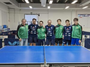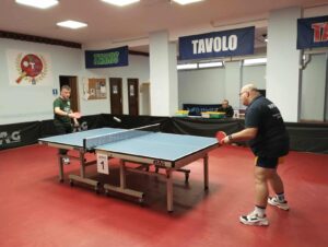 Per la C2 è scesa in campo la BLOCK SHAFT, con Salvatore Di Sabato, Salvatore Bungaro (Cap.) e Franco Oliva, opposta al TT Olimpia di Francesco BUZZ Lightyear, Giorgio Caroli (cap.) e Angelo Piepoli. Nel primo match il nostro KING Di Sabato ha lottato caparbiamente contro Buzzerio, col quale era anche in vantaggio nel primo set per 10-7, perdendolo poi purtroppo ai vantaggi per 12-10. anche il secondo set è stato molto tirato ed è finito 11-9, e solo nel 3° set Buzzerio è riuscito a vincere per 11-7. Il secondo match invece vedeva opposti Caroli e “Tore” Bungaro. Il giovane capitano, pur perdendo il primo set, per fare “la mano” contro l’antitop del Consigliere Regionale martinese, si è poi imposto per la sua maggiore mobilità di gambe per 11-5/11-5/11-9, dando alla BLOCK SHAFT il punto del pari. Toccava ora a Franco Oliva contro Piepoli, e nel primo set il giovane polignanese sembrava essere in grado di poter giocare alla pari col suo avversario. Ma perdeva anche lui ai vantaggi al 1° set, e questo gli faceva perdere incisività nei due sets successivi, terminati 11-6/11-7 per Piepoli (2-1 Martina). Le speranze riposte nel doppio, si infrangevano contro l’esperienza del duo martinese Buzzerio & Caroli, e i nostri ragazzi Bungaro & Oliva perdevano nettamente per 3-0. Dopo il doppio Buzzerio in forma C1, vinceva contro Bungaro con un triplo 11-5 (dando il punto della vittoria al TT OLIMPIA MARTINA e nulla poteva Salavatore Di Sabato, non al meglio della condizione, contro un Piepoli apparso invece molto concreto e in forma, che si imponeva per 3-0 (5-1 Martina). A rendere meno dolorosa la sconfitta, ci pensava l’altro giovane alfiere della squadra, il quale non mollava sotto per 1-0 10-10, si aggiudicava il 2° set ai vantaggi e da li faceva partire una rimonta che lo portava a battere Caroli per 3-2, dando il punto del 5-2 finale alla BLOCK SHAFT