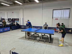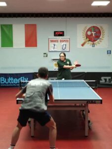 Alla stessa ora a Martina Franca, scendeva in campo nel Girone E della D2, la VI.LU’ SUITE, quasi al completo, con il Capitano Giuseppe Oscuro, Gianvito Fanizzi, Antonio Torres II, Francesco Pietromonaco e Desire’ Cassano, contro il TT Olimpia Martina di Nicola Caroli (Cap.), Raffaele Modeo, Vito Rodio e il giovane Marco Lacarbonara. La giornata cominciava bene, con oscuro che si imponeva per 3 sets a 1 contro Modeo, dando il punto del temporaneo 1-0 ai nostri ragazzi. Nel secondo match bella prestazione di Torres contro il puntinato Lacarbonara, con parziali combattuti (13-11 il 1° set per il martinese) e 3° set vinto dal più giovane degli omonimi, ma il risultato finale arrideva al ragazzo dell’Olimpia per 3-1. Fanizzi invece sendeva un pò in campo scarico nel primo set con Vito Rodio (11-2) ma giocava in maniera gagliarda il secondo e terzo set, come testimoniano i parziali di 11-9 e 11-8. Doppio inedito per i nostri colori, composto da Torres e Pietromonaco, che però necessitano di affiatamento e contro una coppia esperta come Nicola Caroli & Vito Rodio, riuscivano solo nel 3° set a raggiungere un parziale decoroso (11-8) per il 3-0 finale (e il 3-1 del Martina). Un Torres riscaldato dal doppio e motivato a cancellare lo zero dalla casella vittorie, giocava con Modeo un ottimo 1° set (11-6) nel quale mostrava tutti i progressi visti in allenamento e non mollando neanche nel 2° vinto ai vantaggi per 13-11. Un lieve passaggio a vuoto del nostro ragazzo dava l’1-2 a Modeo (11-3) ma il più giovane dei cugini Torres riprendeva a giocare molto bene e concludeva in bellezza con un top di rovescio (11-7) dando il punto del 2-3 alla VI.LU’ SUITE e a mettere a referto la sua prima (si spera di una lunghissima serie) vittoria in campionato. Purtroppo però il Capitano Oscuro non si ripeteva contro Rodio, apparso molto determinato e capace di realizzare una doppietta col 3-0 che dava la vittoria ai martinesi (4-2), mentre nell’ultimo match era Lacarbonara a realizzare la sua doppietta contro il subentrato Pietromonaco, apparso ancora incerto contro i giocatori puntinati. Risultato finale quindi 5-2 per il TT Olimpia Martina.